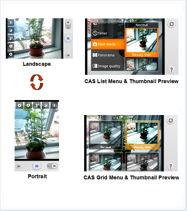 : Thumbnail preview for effects, Panorama, S/W Zoom, Store location, UI Animation, etc